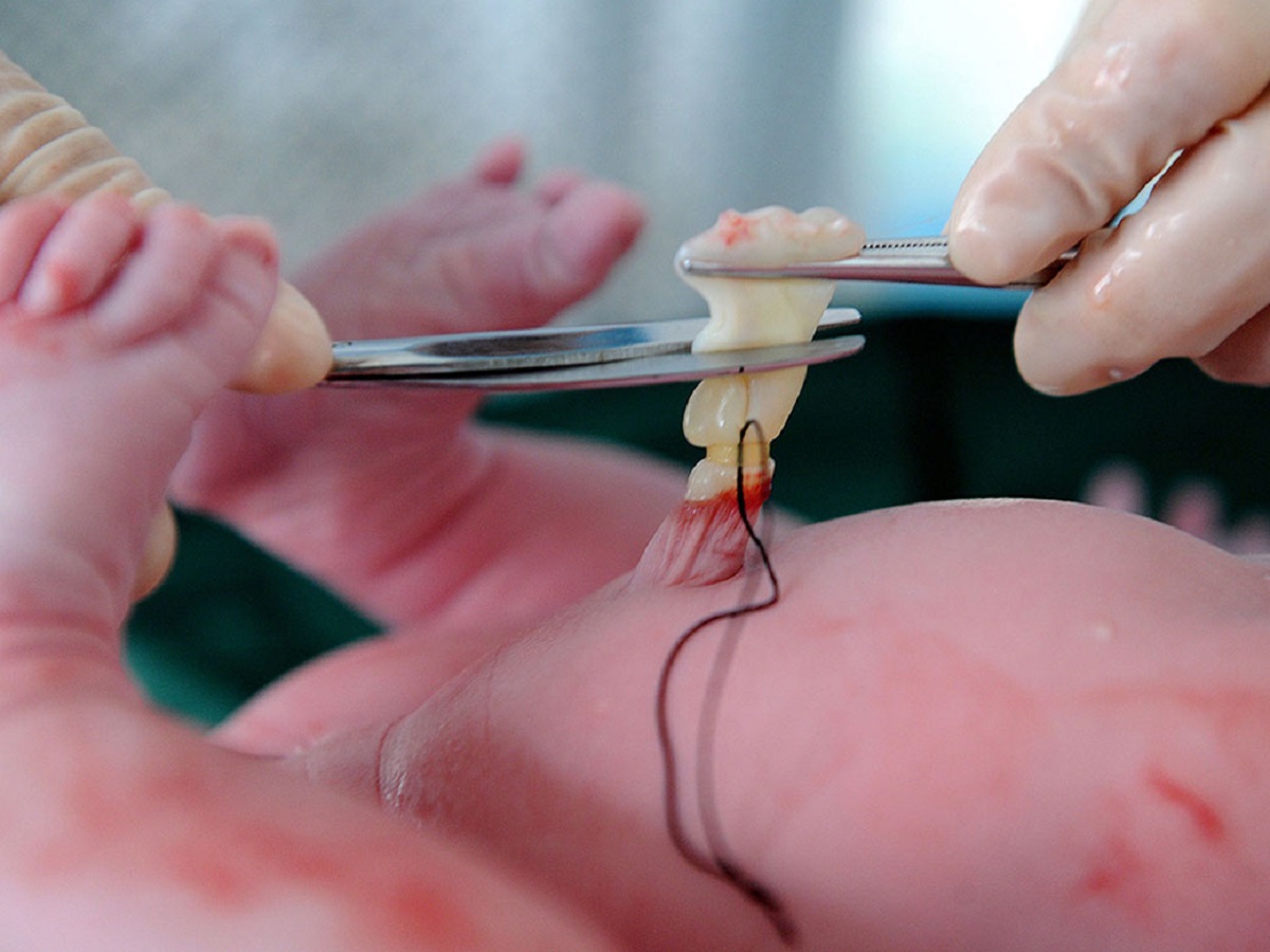 Lấy máu cuống rốn ở trẻ sơ sinh.